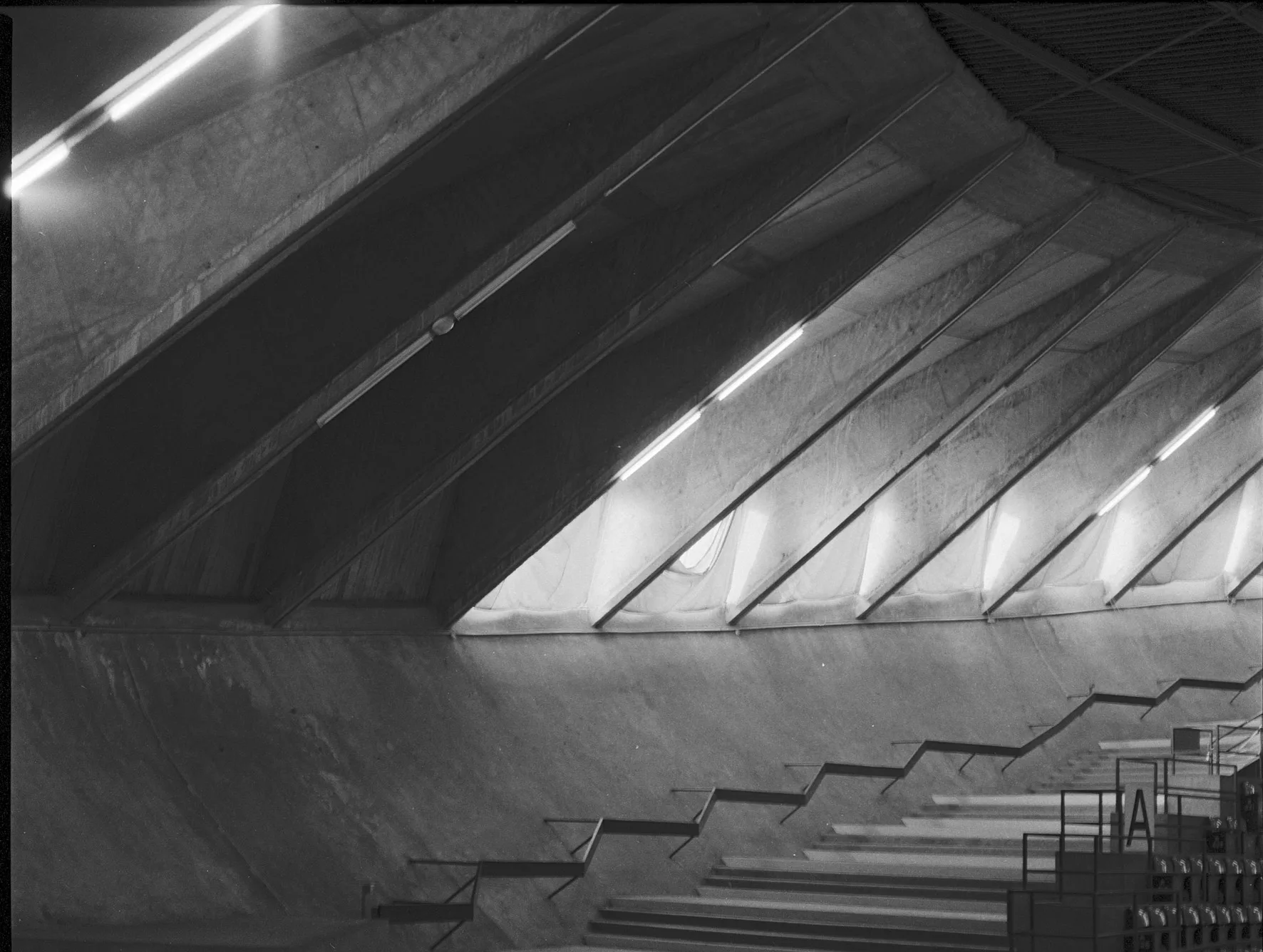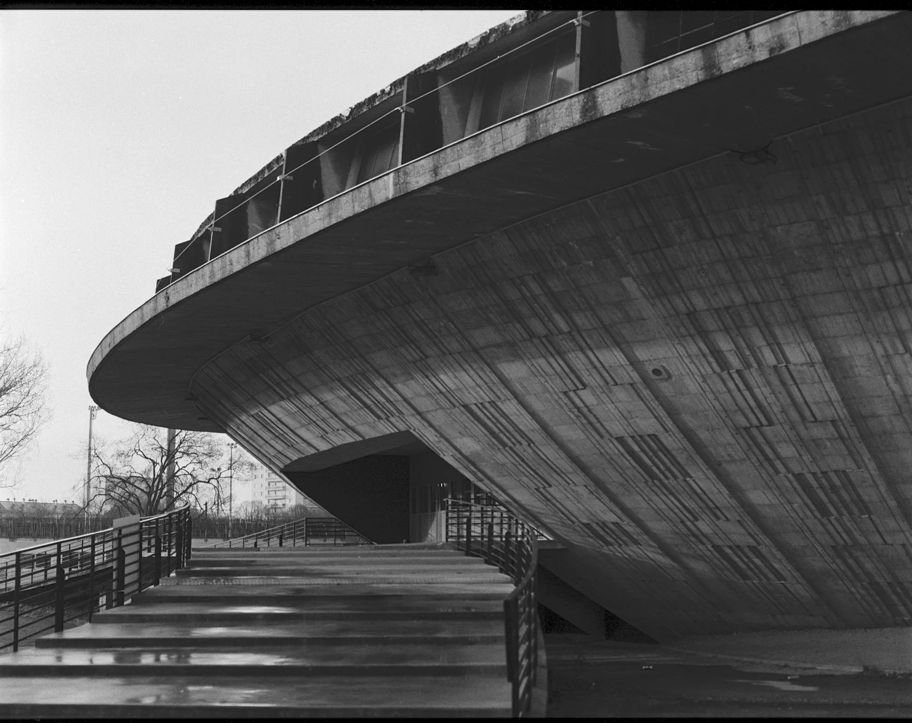 Inaugurée en 1970, la « Soucoupe » est l’élément fort du grand parc des sports de la Reconstruction. Son architecture novatrice, en forme de calotte sphérique inversée, et l’utilisation du béton armé créent un grand volume de 3 500 places. Une prouesse signée par les architectes Roger Vissuzaine, René Rivière et Louis Longuet.
