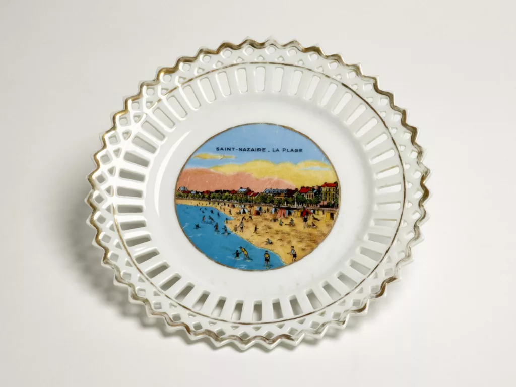 Assiette en porcelaine représentant la plage de Saint-Nazaire.
