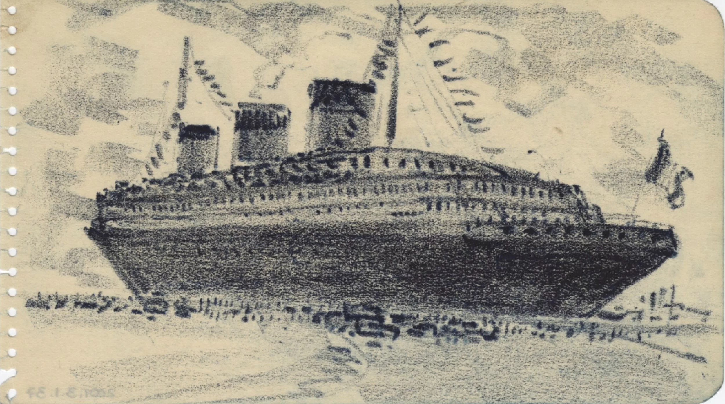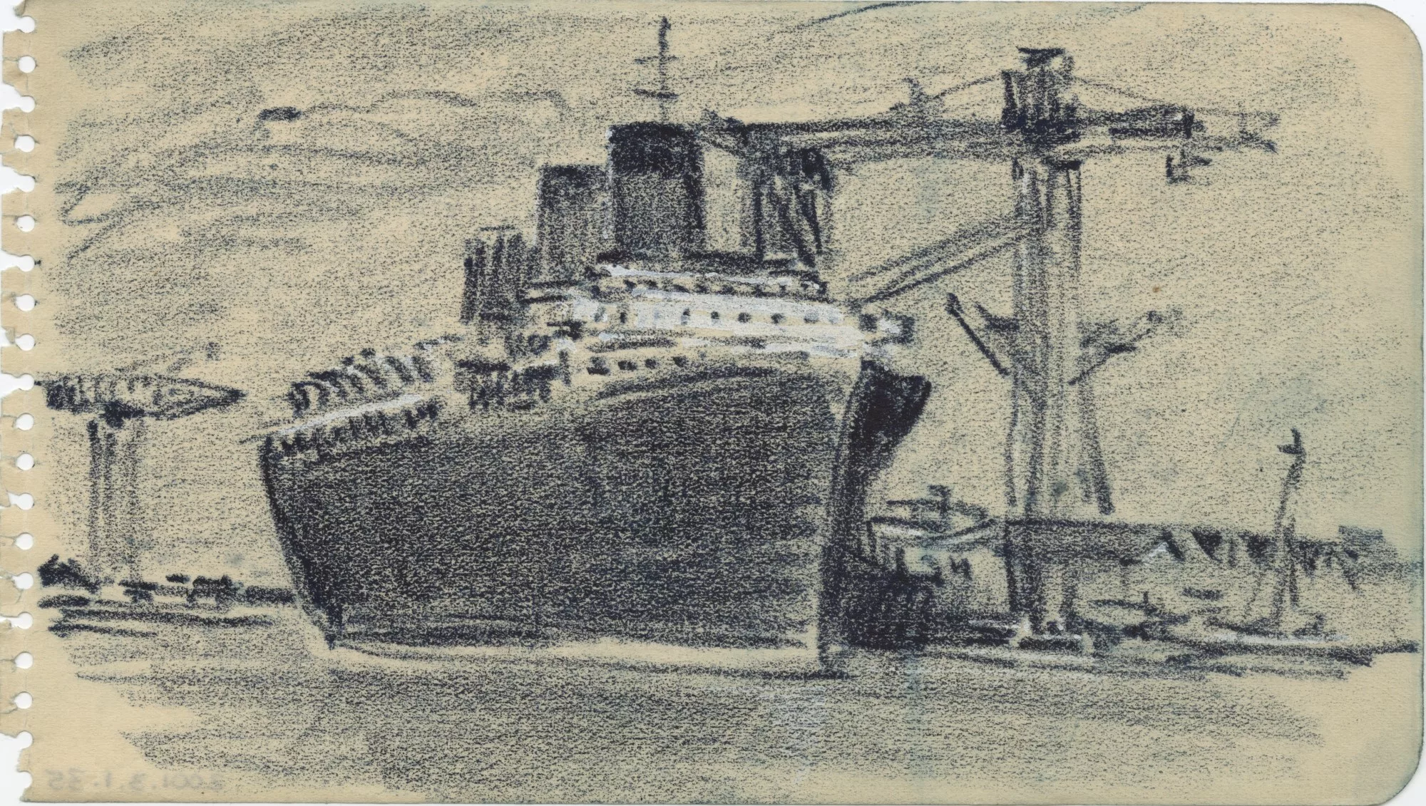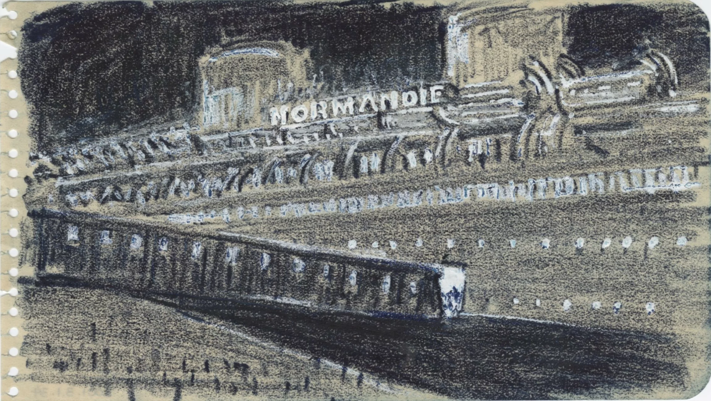 Invité à bord du Normandie pour sa traversée inaugurale en mai 1935, le maître-verrier Auguste Labouret en saisit la vie et les lumières dans quatre carnets de voyage et 71 feuillets, aujourd’hui conservés par l’Écomusée de Saint-Nazaire. Une immersion graphique dans un moment clé de l’histoire du navire de légende.