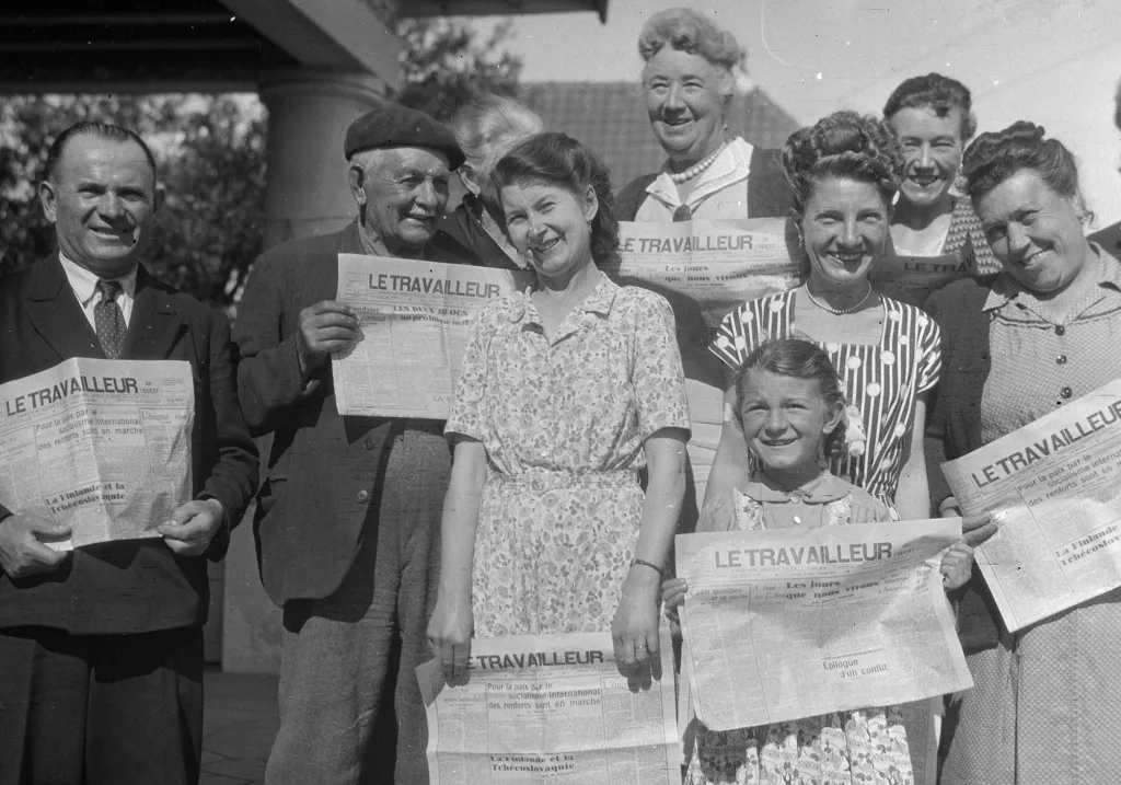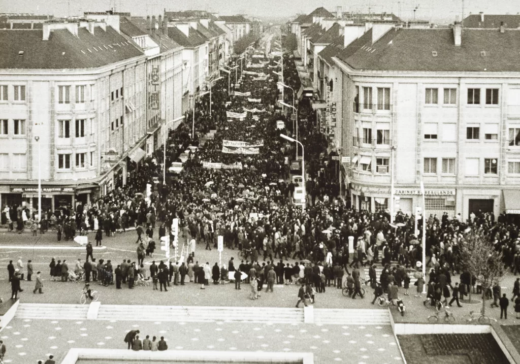 Issues des fonds patrimoniaux de Saint-Nazaire Agglomération Tourisme – Écomusée, les photographies présentées témoignent d’instants de citoyenneté à Saint-Nazaire.
