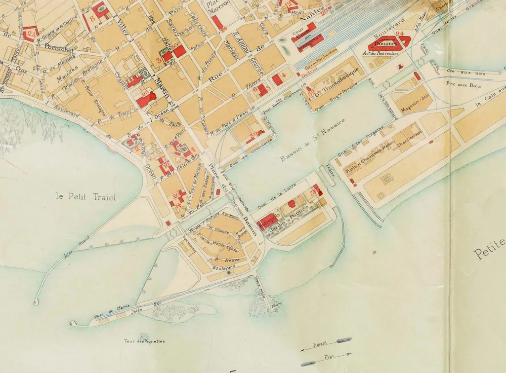 En quelques années, la physionomie du bourg change. De 1848 à 1856, l’ingénieur des Ponts et Chaussée Charles-Auguste Jégou orchestre la construction du bassin de Saint-Nazaire. Son inauguration a lieu le 25 décembre 1856.