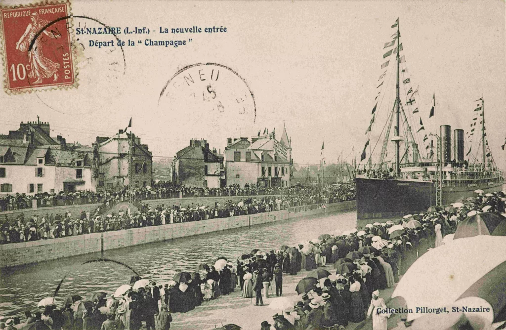 Issues des fonds patrimoniaux de Saint-Nazaire Agglomération Tourisme – Écomusée, les photographies et cartes postales présentées dans cette exposition font défiler sous vos yeux l’histoire de l’entrée originelle du port de Saint-Nazaire.