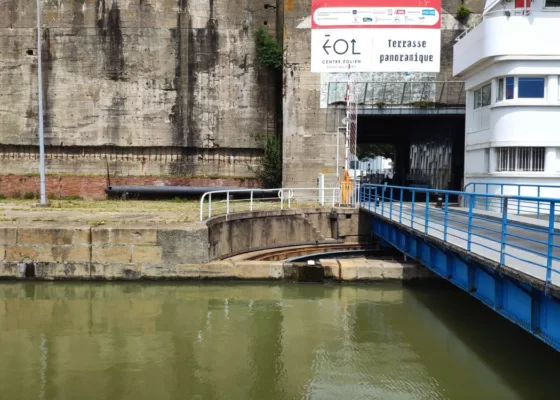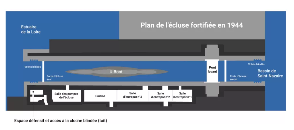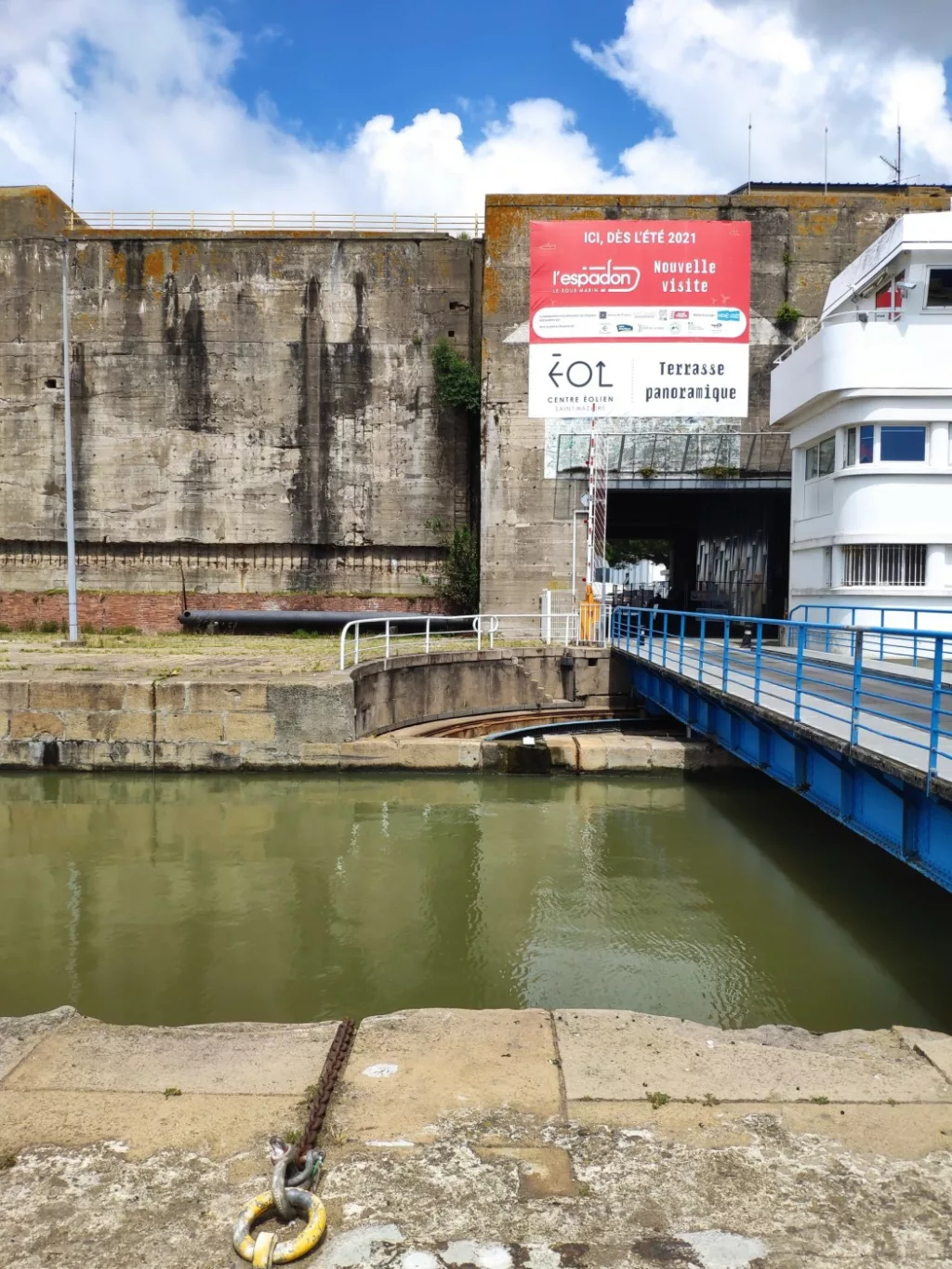 Nombreux sont ceux qui connaissent le sous-marin Espadon ! Mis en service en 1960, ce submersible est une attraction populaire du port de Saint-Nazaire. Retraité de la Marine, c’est à présent un lieu de visite abrité par un blockhaus de la Seconde Guerre mondiale : l’écluse fortifiée. Ce site appartient à une infrastructure plus large, l’entrée Est. Aujourd’hui détrônée par l’entrée Sud et la forme-écluse Joubert, cette première entrée du port a pourtant été le témoin d’une histoire mouvementée.