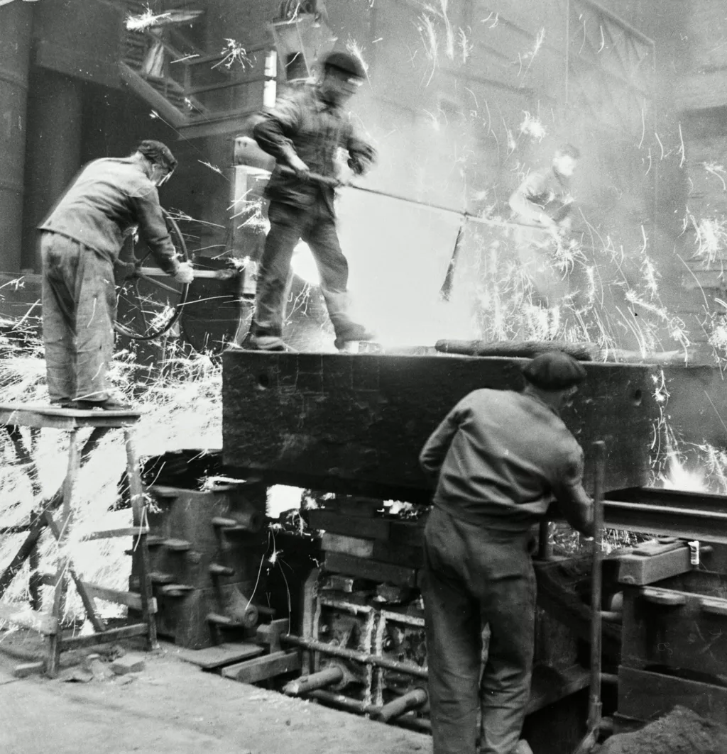 Issues des fonds patrimoniaux de Saint-Nazaire Agglomération Tourisme – Écomusée, les photographies esquissent un portrait collectif d’un Saint-Nazaire en mouvements, emporté par l’élan de la Reconstruction urbaine et économique.