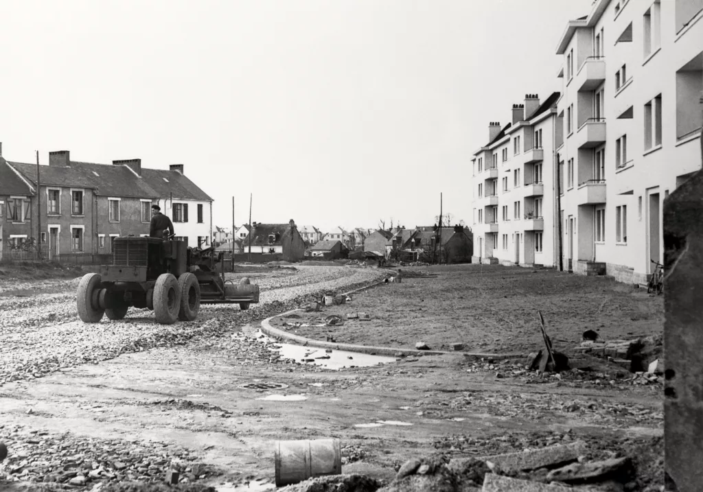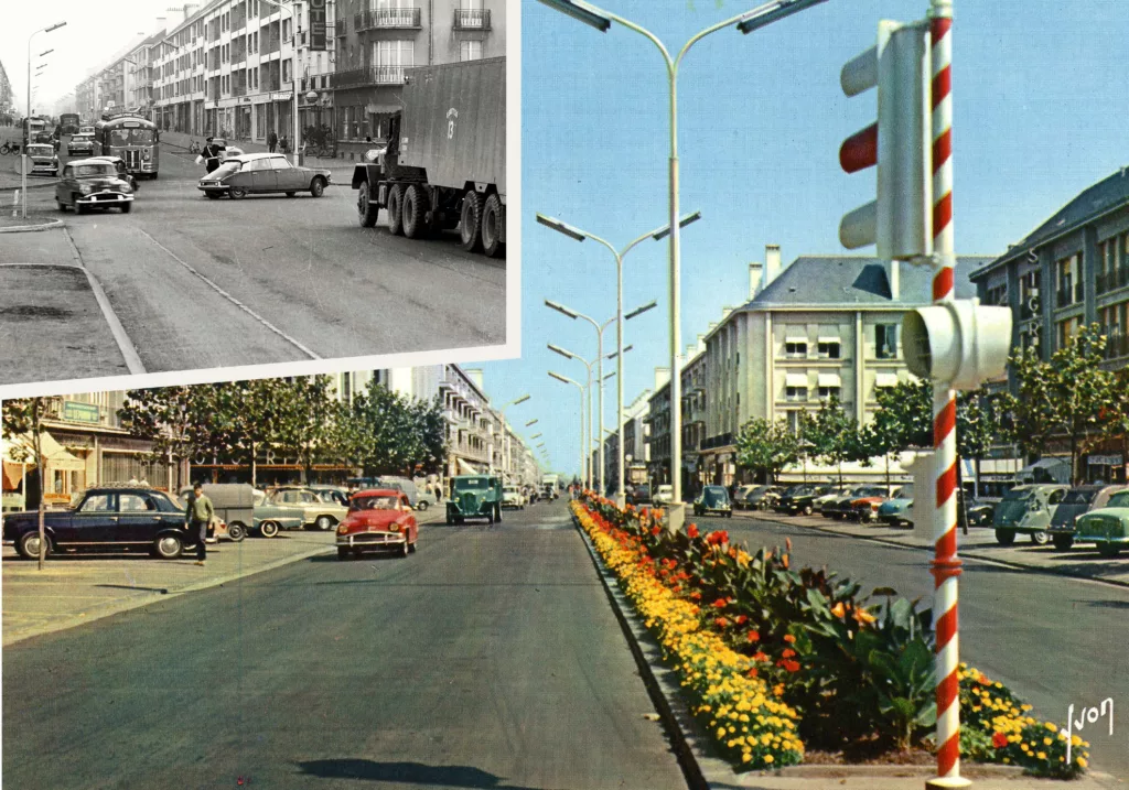 Au sortir de la Seconde Guerre mondiale, Saint-Nazaire est en ruines. Logements, édifices publics, réseaux et voies de circulation sont endommagés ou n’existent plus. Confort, hygiène, fluidité, le plan de Reconstruction inscrit alors la ville dans la modernité. Habiter, travailler, profiter du temps libre, circuler en sont les clefs. Si la voiture est encore rare au début des années 1950, son développement futur à Saint-Nazaire ne fait alors aucun doute. Les circulations douces sont encore loin des esprits.