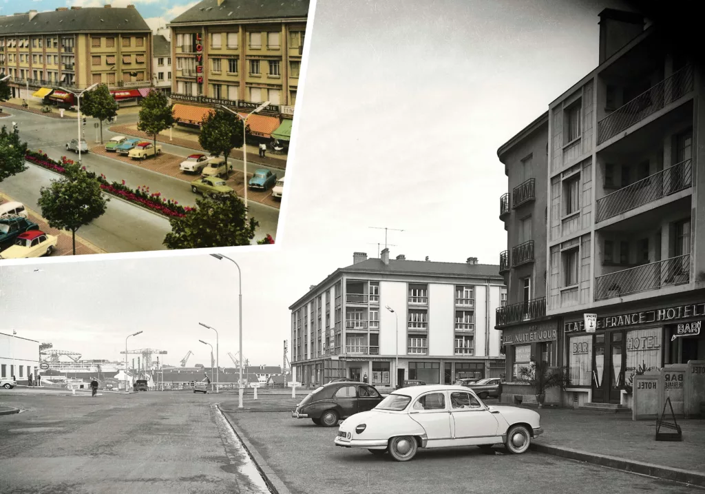 Issues des fonds patrimoniaux de Saint-Nazaire Agglomération Tourisme – Écomusée, les photographies et cartes postales présentées témoignent de cette renaissance moderne de la ville de Saint-Nazaire.