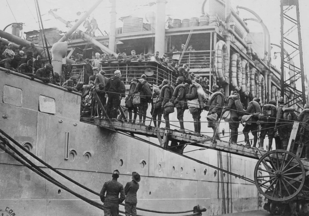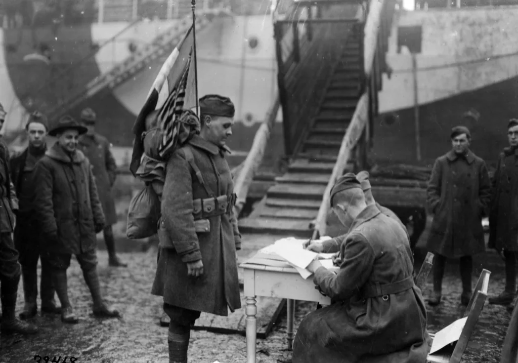 Si le Traité de Versailles du 28 juin 1919 met officiellement fin à la Première Guerre mondiale, l’Armistice annonce dès le 11 novembre 1918 un retour progressif à la paix. Victorieux, les États-Unis ont fait pencher la balance du côté des Alliés et amorcent l’organisation du retour au pays. À la fin de la guerre, Saint-Nazaire devient le principal port de rembarquement et voit défiler près de 500 000 soldats américains.